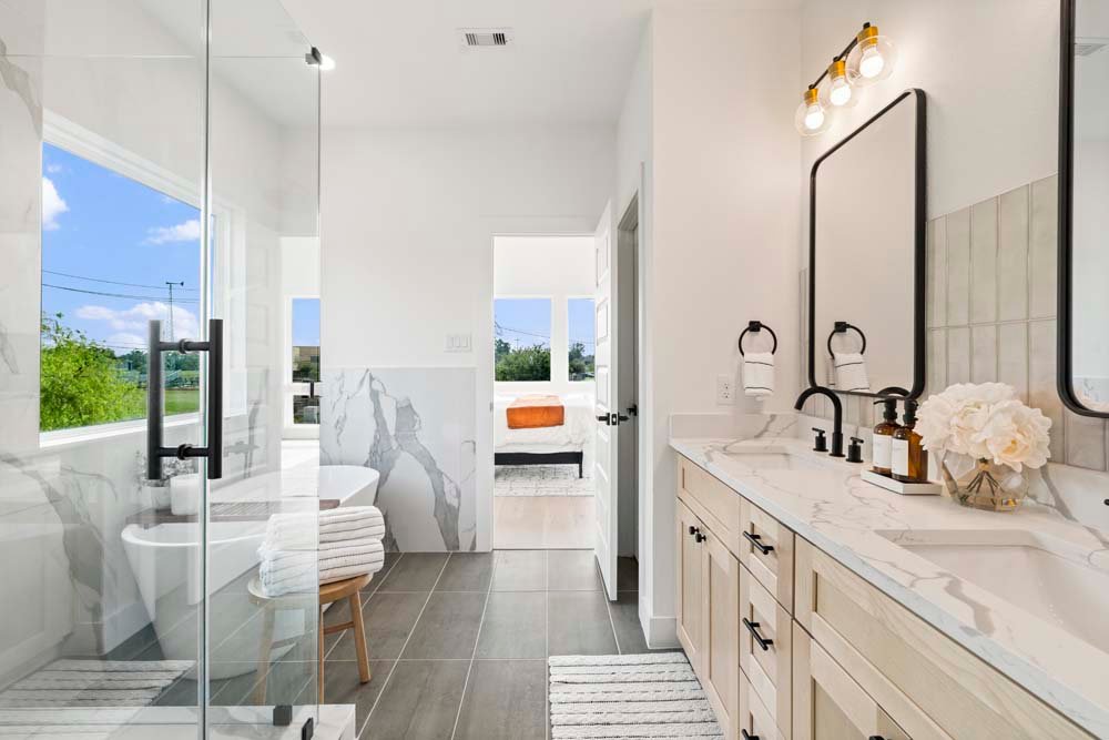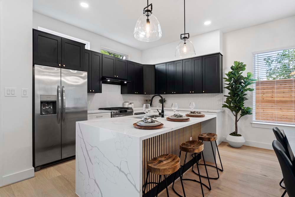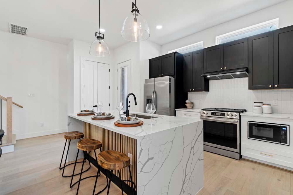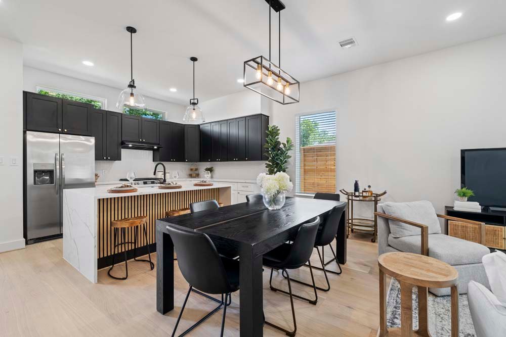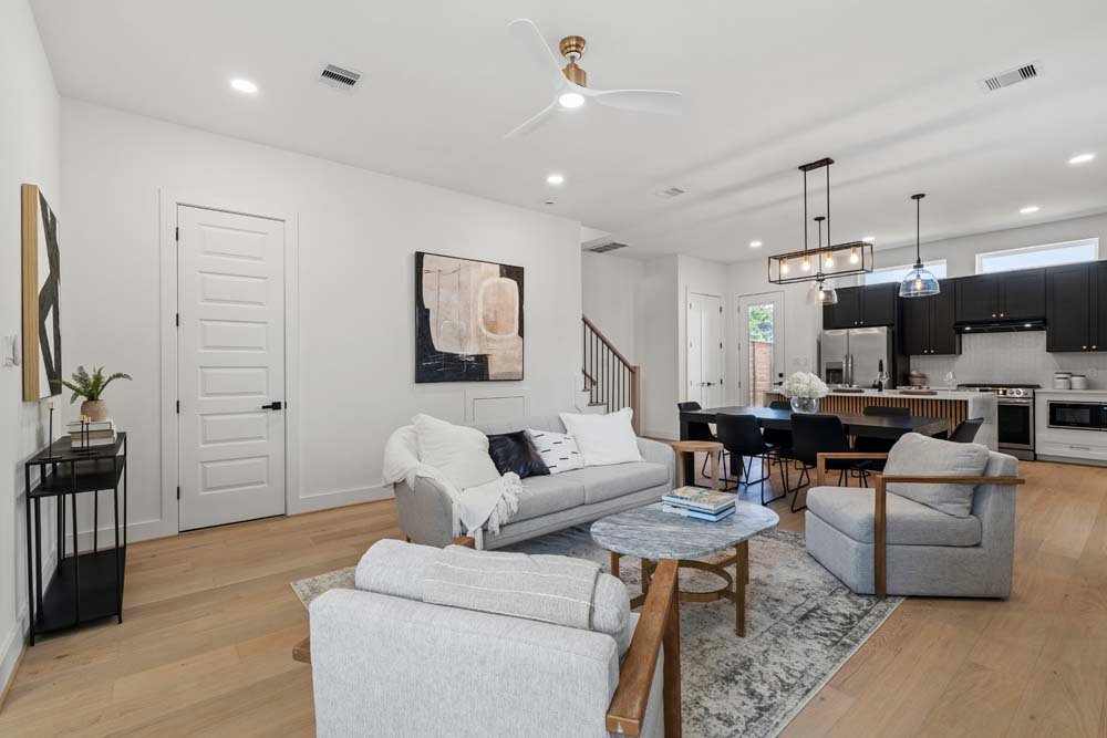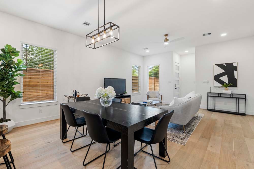 Texas Development Group debuts the Cortlandt residence in Independence Heights—featuring two newly constructed single-family homes with private backyards. Ideally located minutes from Whole Foods 365, Houston Farmers Market, major freeways, the Heights, and Downtown, this community offers urban convenience in a growing neighborhood. Enjoy first-floor living with an open layout, soaring ceilings, and a designer kitchen featuring bold two-tone cabinetry, a fluted island, and elegant pendant lights and chandelier. All bedrooms are upstairs, including a spacious primary suite with cathedral ceilings and oversized picture windows. The ensuite bath offers a timeless look with double sinks, a frameless glass shower, and a standalone tub. Secondary bedrooms are generously sized, perfect for guests, family, or a home office. A spacious backyard for private or entertaining guest. Welcome Home!